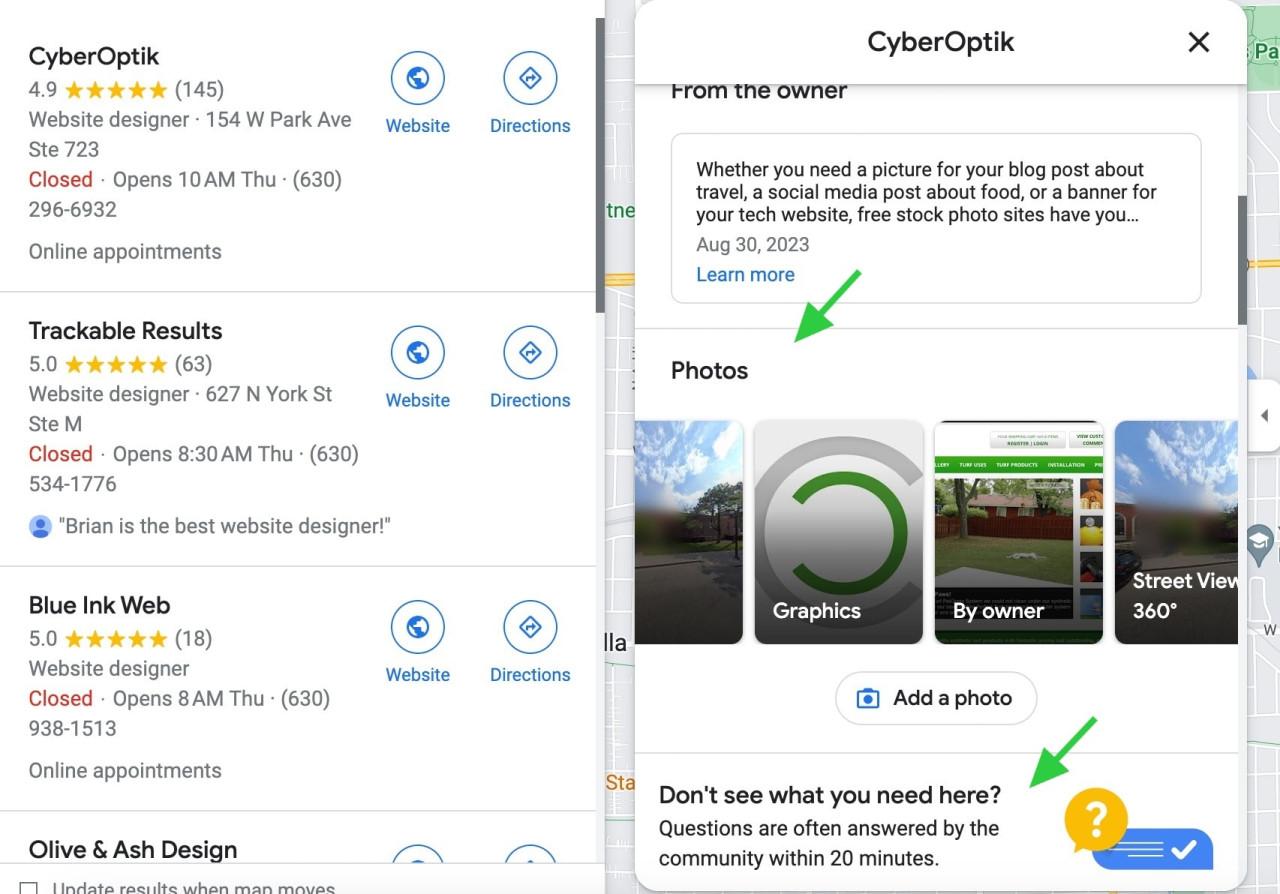 Local businesses listed on the map have star ratings next to their name. Google wants to offer an enhanced user experience and help them to find the best nearby business. Most users refer to online reviews before they trust a local business for its services or products. Reviews can highly influence the purchase process for any business.